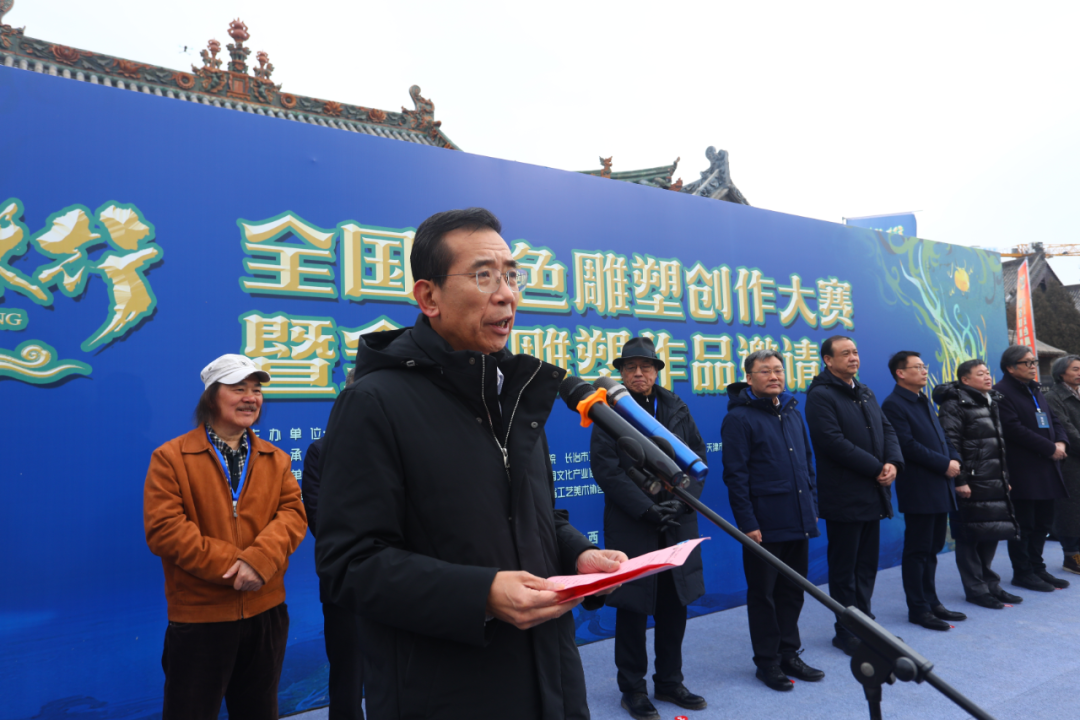 中共长子县委副书记、代县长王慧忠主持开幕式。中国工艺美术学会副理事长兼秘书长徐栋,中国城市雕塑家协会副主席、天津市彩塑艺术研究院学术指导、天津美术学院教授景育民,中国工艺美术大师刘静兰、陈毅谦、王鹏、钟汝荣、薛晓东、郭爱和、王潇笠、史延春以及山西省工艺美术协会理事长李宏斌,山西省传统工艺美术发展协会理事长赵志坚、长治市工艺美术协会会长徐亚强等行业翘楚,中国美术学院公共艺术研究院院长翟小实,景德镇陶瓷大学教授宋伟光,天津中德应用技术大学艺术学院院长靳鹤琳,天津美术学院津美融合创新研究院副院长吕铁元,天津科技大学艺术设计学院副院长张新沂,天津美术学院非遗研究中心非遗研培项目负责人匡丽萍,太原科技大学美术学院原院长、教授王晋平,太原科技大学副教授杜立鹏,中国工艺美术学会彩塑艺术专业委员会副秘书长付孝勇等高校专家学者齐聚现场。长治市政协主席李敏,长子县委书记牛志强、长治学院党委书记曹景川,副书记史晓东等省市区相关领导及市直部门负责同志出席,与大赛参赛选手、行业代表共同见证活动启幕。
