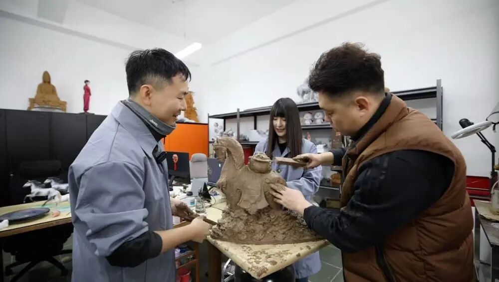 春节的脚步越来越近,年味儿渐浓。中国工艺美术学会彩塑艺术专委会共建单位——天津泥人张彩塑工作室里,大家正在为马年新春忙碌着。工作台前,工艺美术师凝神运指——湿润的陶土在他们的掌间逐渐苏醒,肌理渐显,骨骼渐成,泥土被赋予了奔腾的温度。