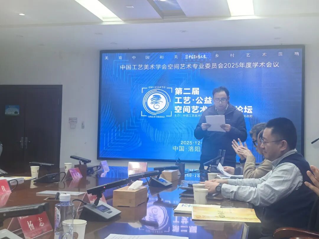 2025年12 月 27 日,中国工艺美术学会空间艺术专业委员会 2025 年度学术会议暨第二届 [工艺・公益] 空间艺术与乡建论坛在洛宁县举行。中国工艺美术学会党委书记、理事长才大颖出席并做总结发言。洛宁县人民政府副县长张雄出席会议并致辞。本次会议以 “工艺・公益”“空间艺术与乡建”“乡村美育” 为核心主题,汇聚行业专家、学者、艺术家及相关单位负责人,共探空间艺术与乡村建设的深度融合路径,为乡村振兴注入文化艺术动能。