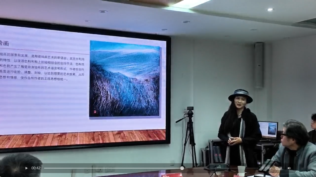 上海市工艺美术大师徐洪雁现场展示陶瓷泼绘作品,分享了《陶瓷泼绘创作及表达》的心得,阐释了偶发性因素对作品肌理呈现的独特影响。