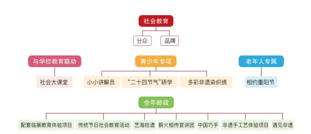 ▲ 图2 中国非遗馆开展的分众化社会教育(宋艺 制)