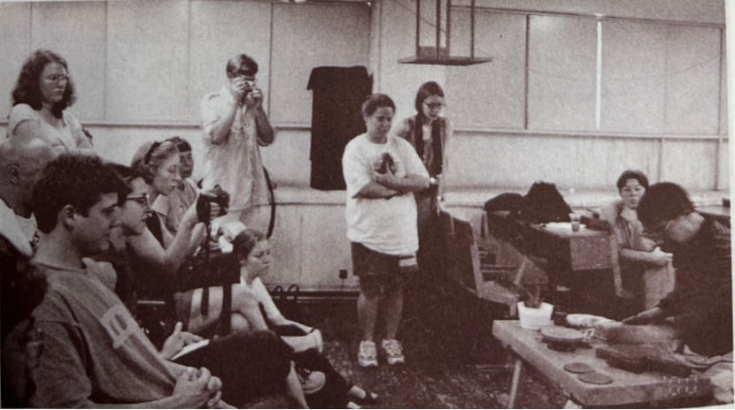 美国西部艺术学校代表团的同学正在观看潘春芳现场制作紫砂壶