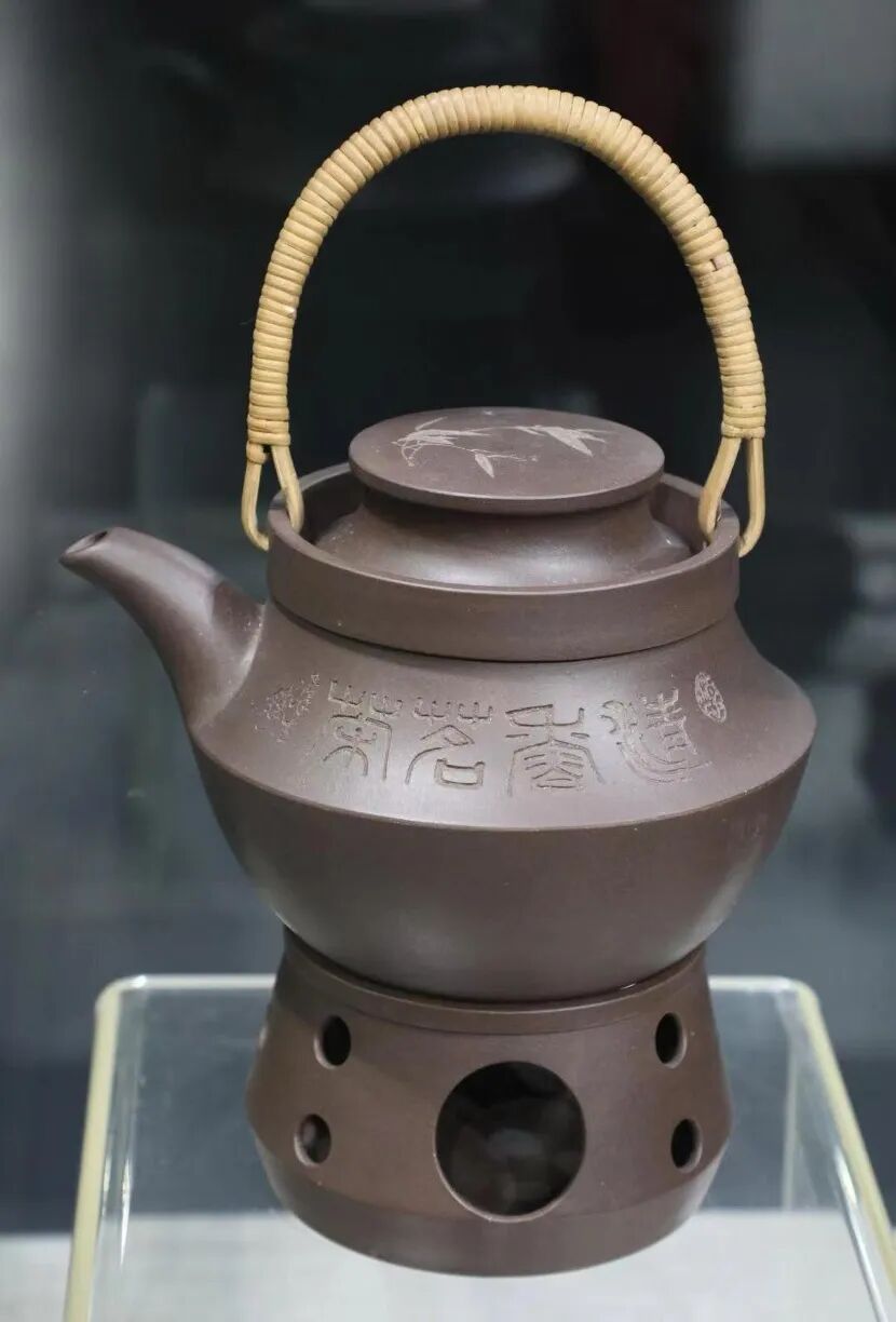 上双线竹鼓壶 紫砂 1957年