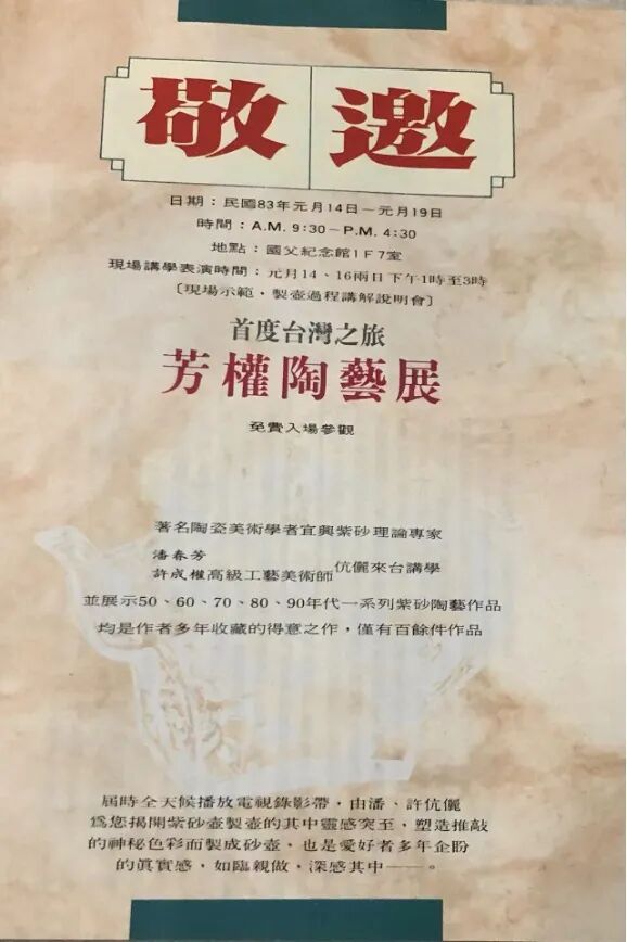 受邀赴台湾讲学并举办《芳权陶艺展》