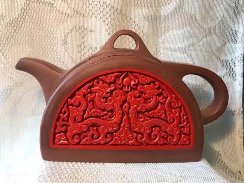 紫砂雕漆双龙戏珠壶 紫砂 2017年