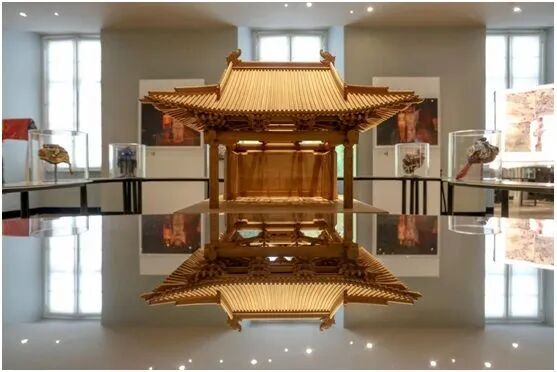 展览现场的山西临汾牛王庙古戏台模型。(图片由主办方提供)
