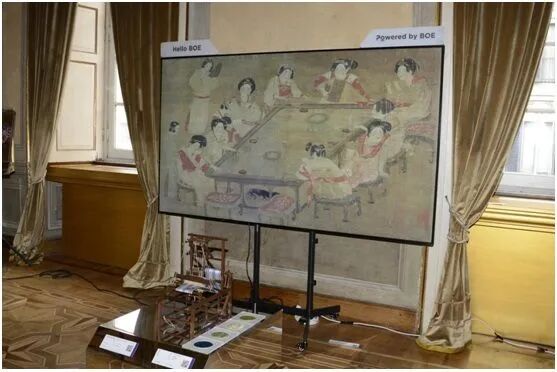 《唐人宫乐图》动画与中国传统织机模型展示。(欧洲时报记者夏晓彤 摄)