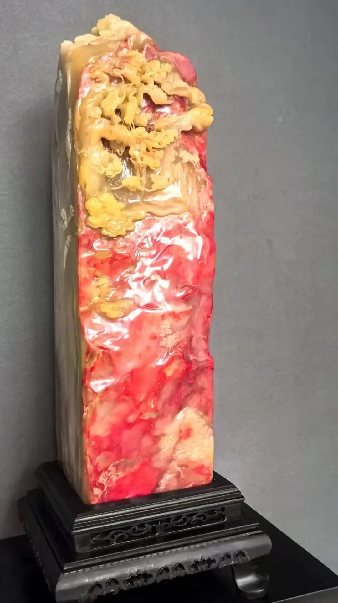 创作理念:作品石身融福黄温润与鸡血红艳,双色交融自然,石身融福黄温润与鸡血红艳,双色交融自然,既保印章形制规整,又显雕工灵动。责任编辑:孟 曦