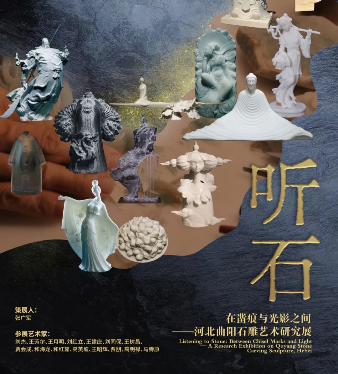 正是在这样的时代背景下,策展团队选择了798艺术街区这个具有特殊意味的地方,用“听石”这样一个充满禅意与哲学思辨的主题诠释其学术主张。意在启迪、唤醒曲阳雕刻的另外一层含义,那就是曲阳石雕精神性、文化性、艺术性的当代表达如何与时俱进,并试图为曲阳雕刻的深度转型做些引领性思考。从这样的视角看,本次展陈不仅仅是一次作品的例行陈列,而是一次具有学术引领性的主动而为,更是一次关于 “文化新质生产力”的深度实践,以此,实现新时代曲阳雕刻从“技”向“道”的产业突围。