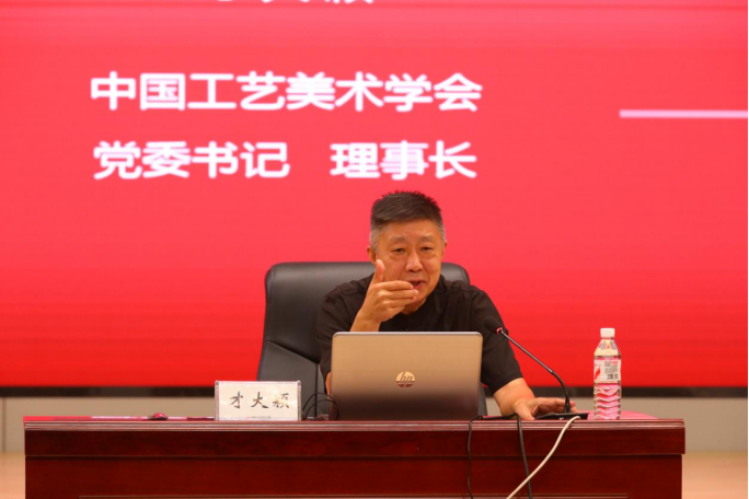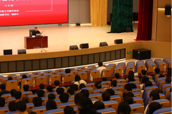 才大颖理事长围绕“艺术设计如何与新时代中国式现代化的本质要求相适配”;“艺术设计如何在跨界融合、跨界打劫、跨界颠覆的背景下实现出圈赋能”;“艺术设计如何发挥支点的撬动作用,成就中国工艺美术从‘产品思维’向‘产业思维’跨越”;“艺术设计在科技与艺术深度交融的时代背景下如何实现从‘学科教育’走向‘能力教育’”;“艺术设计教育教学体系如何满足新时代社会对人才的渴求”;“艺术设计如何呈现工艺美术的造物之美”等议题与桂林航天学院的师生坦诚交流。整个授课以“建构文化新质生产力,推动中国工艺美术深度转型”为主线,从全球博弈、文化强国、行业特征、消费市场、产业目标、大师经济、时尚趋势、工美报国等八个方面阐述了中国工艺美术产业在新时代仅有转型是不够的。必须是伴有升级的深度转型,必须与中国式现代化同频共振,必须以“新文化”贯穿于中国工艺美术深度转型始终。