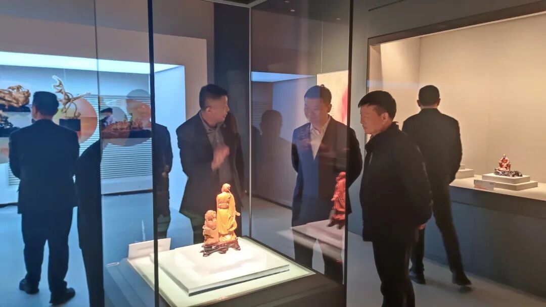3月28日,在温州博物馆,调研组一行参观了即将举办的“薪火同辉——师徒三代木雕的传承与新声”木雕技艺展。展览以“师承”为主线,聚焦三代师徒践行守护的传承脉络:从虞明华的技艺复兴,到虞金顺、虞定良的守正创新,再到吴尧辉、牟湘波的破界探索,三代艺匠同承一脉、各展其长。