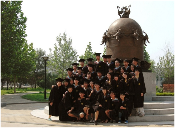 2012年6月中国地震学院的的学生们在刚刚落成的原大地动仪前合影图片提供:吴桐
