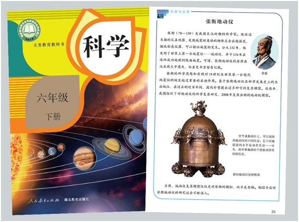 新版张衡地动仪教材2011年图片提供:冯锐