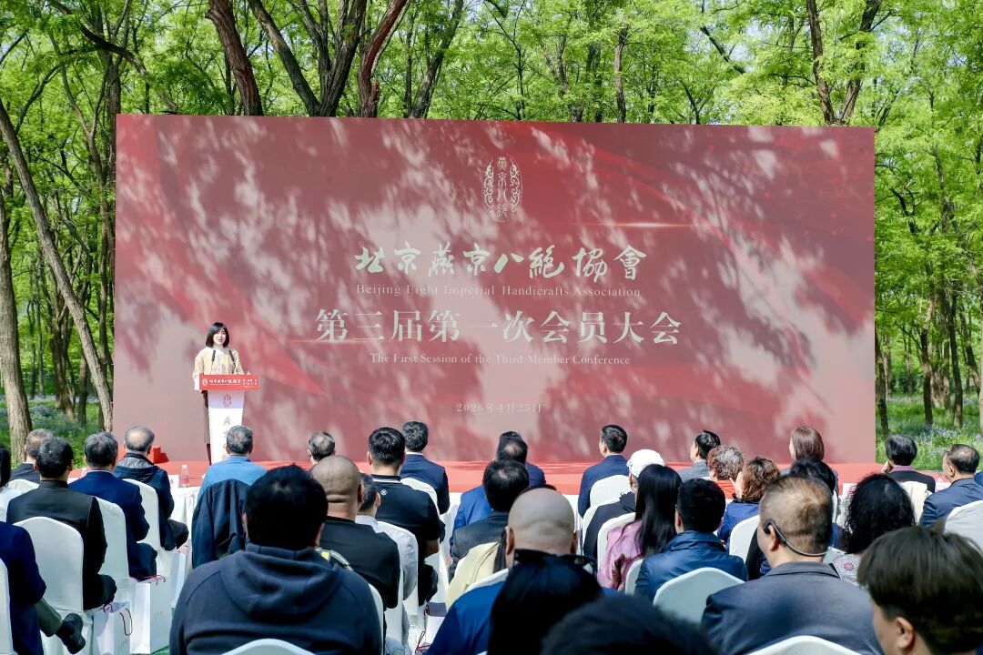 2026年4月25日上午,北京燕京八绝协会第三届第一次会员大会在北京燕京八绝博物馆(朝阳馆)召开。中国工艺美术学会副理事长兼秘书长徐栋应邀出席。出席会议的还有北京市文学艺术界联合会党组书记、常务副主席马新明,中国工艺美术协会驻会副会长王志杰,全国政协委员、北京新的社会阶层人士联谊会会长权忠光、中国工艺美术学会监事、北京工艺美术学会常务副理事长兼秘书长叶晓溪、北京市文联组联部主任白媛媛,中国工艺美术学会理事、宫廷艺术专委会常务副主任、北京燕京八绝协会会长柏群,中国工艺美术学会理事、中国工艺美术大师李春珂、钟连盛、杨根连、张铁成,中国工艺美术大师殷秀云、王建,北京玉器二厂厂长孟凡婵等,以及行业同仁90余人。大会由北京燕京八绝协会秘书长杨宁主持。