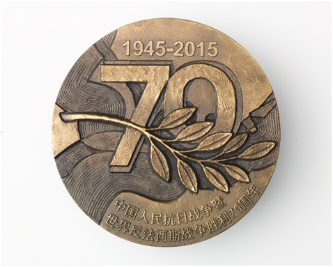 《世界反法西斯战争胜利70周年东方主战场纪念铜章正面》,2015年图片提供:吴桐