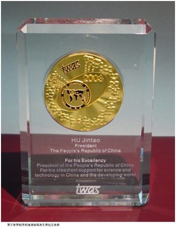 2003年第三世界科学院赠送给胡锦涛主席的纪念金牌 图片提供:吴桐