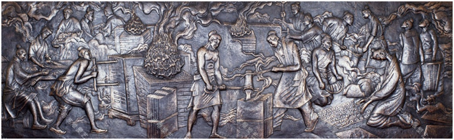 中国钱币博物馆大型锻铜浮雕壁画《铸》 700cm*190cm 1993年图片提供:吴桐
