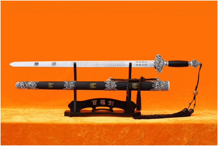 创作理念:作品剑身选用优质花纹钢经反复烧煅,千锤百炼锻打后,再经二十多道祖传制剑及创新工艺的精心制作而成。正面的前端精刻上“福往福来,福建来见”,中间精刻“百福”,后端精刻不同的两“福”。剑身背面剑面的前端精刻上“福星高照、福佑中华”,中后端精刻“双童送五福”,剑鞘为名贵黑木制作,并配饰银色中国龙铸件及精刻双童送五“福”图。《用艺术照亮乡村》