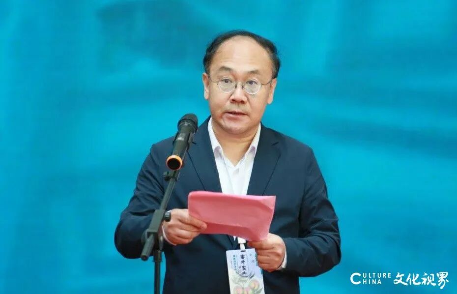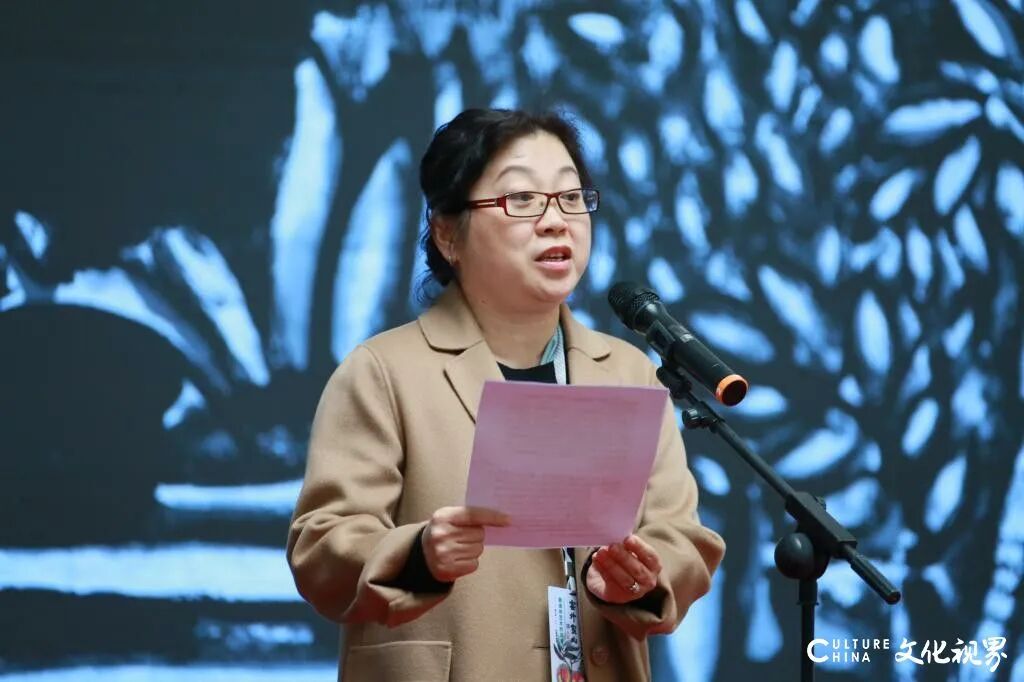 池灏副主席代表山东省美术家协会致辞。她表示,唐绪祥教授艺术功底深厚、创作风格鲜明,始终以东方田园精神与家园情怀为创作内核,用笔墨与匠心让传统艺术在当代生活中焕发新生机、展现新魅力。山东省美协将继续与山东工艺美术学院深化战略合作,携手并肩推动齐鲁美术事业高质量发展,助力中华优秀传统文化实现创造性转化、创新性发展。